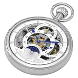 This Charles-Hubert Paris pocket watch comes with a lifetime movement warranty against manufacturing defects. Features include a 17 jewel mechanical movement, dual time zone, 51mm open face case, matching chain, skeleton dial with roman numerals, and a deluxe gift box.