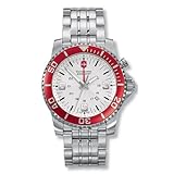 Stainless Steel Case. Stainless Steel Strap. Silver Dial. Red Unidirectional Bezel. Scratch Resistant Sapphire Crystal. Deployment Clasp. 35 mm Case Diameter. Quartz Movement. Water Resistant At 100 Meters (330 Feet). Also known as model number: 25142